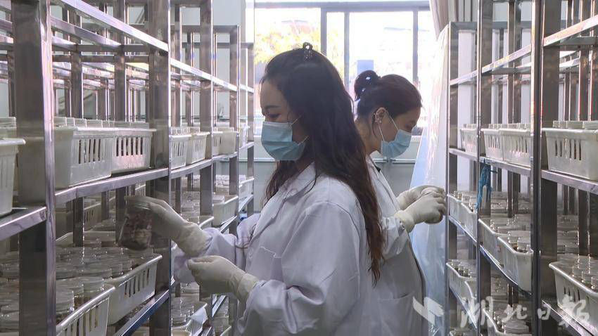 10月27日,在昌欣香菇产业发展有限公司菌种研发中心,技术人员正在观察记录菌菇新品种的生长情况。公司技术研发部职员杨琴介绍,这是今年6月份培育出来的多季菇10号品种,从长势上来看,菇头短、菇盖白、菇质硬,如果引进到菇棚当中,产量和质量将会进一步提高,目前还有5个类似品种正在进行阶段性的实验。